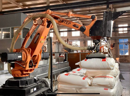 防排水板智能拆垛上料裝備。該設(shè)備有針對(duì)性地設(shè)計(jì)了防排水板自動(dòng)拆垛上料系統(tǒng)的軟硬件組成,尤其是機(jī)器視覺(jué)、電控和機(jī)器人方面,完成了系統(tǒng)的部署及應(yīng)用。在機(jī)器視覺(jué)識(shí)別精準(zhǔn)性方面,料袋中心的平均定位誤差不超過(guò)2.5cm。在運(yùn)行速度方面,袋料的平均拆垛上料時(shí)間在50秒以?xún)?nèi)。