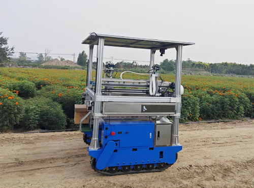 萬(wàn)壽菊智能采摘裝備。萬(wàn)壽菊花期長(zhǎng)開(kāi)花密度大,采摘人工成本高。本產(chǎn)品充分運(yùn)用視覺(jué)識(shí)別、目標(biāo)定位、采摘手抓結(jié)構(gòu)設(shè)計(jì)、軟件設(shè)計(jì)等技術(shù)集成開(kāi)發(fā)而成,在承德地區(qū)進(jìn)行田間作業(yè)取得良好效果。