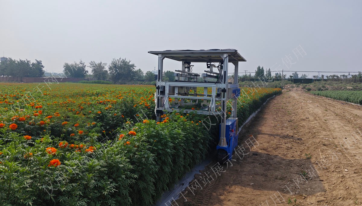 萬(wàn)壽菊智能采摘裝備。萬(wàn)壽菊花期長(zhǎng)開(kāi)花密度大,采摘人工成本高。本產(chǎn)品充分運(yùn)用視覺(jué)識(shí)別、目標(biāo)定位、采摘手抓結(jié)構(gòu)設(shè)計(jì)、軟件設(shè)計(jì)等技術(shù)集成開(kāi)發(fā)而成,在承德地區(qū)進(jìn)行田間作業(yè)取得良好效果。