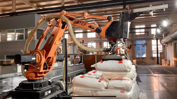 防排水板智能拆垛上料裝備。該設(shè)備有針對性地設(shè)計了防排水板自動拆垛上料系統(tǒng)的軟硬件組成,尤其是機器視覺、電控和機器人方面,完成了系統(tǒng)的部署及應(yīng)用。在機器視覺識別精準性方面,料袋中心的平均定位誤差不超過2.5cm。在運行速度方面,袋料的平均拆垛上料時間在50秒以內(nèi)。